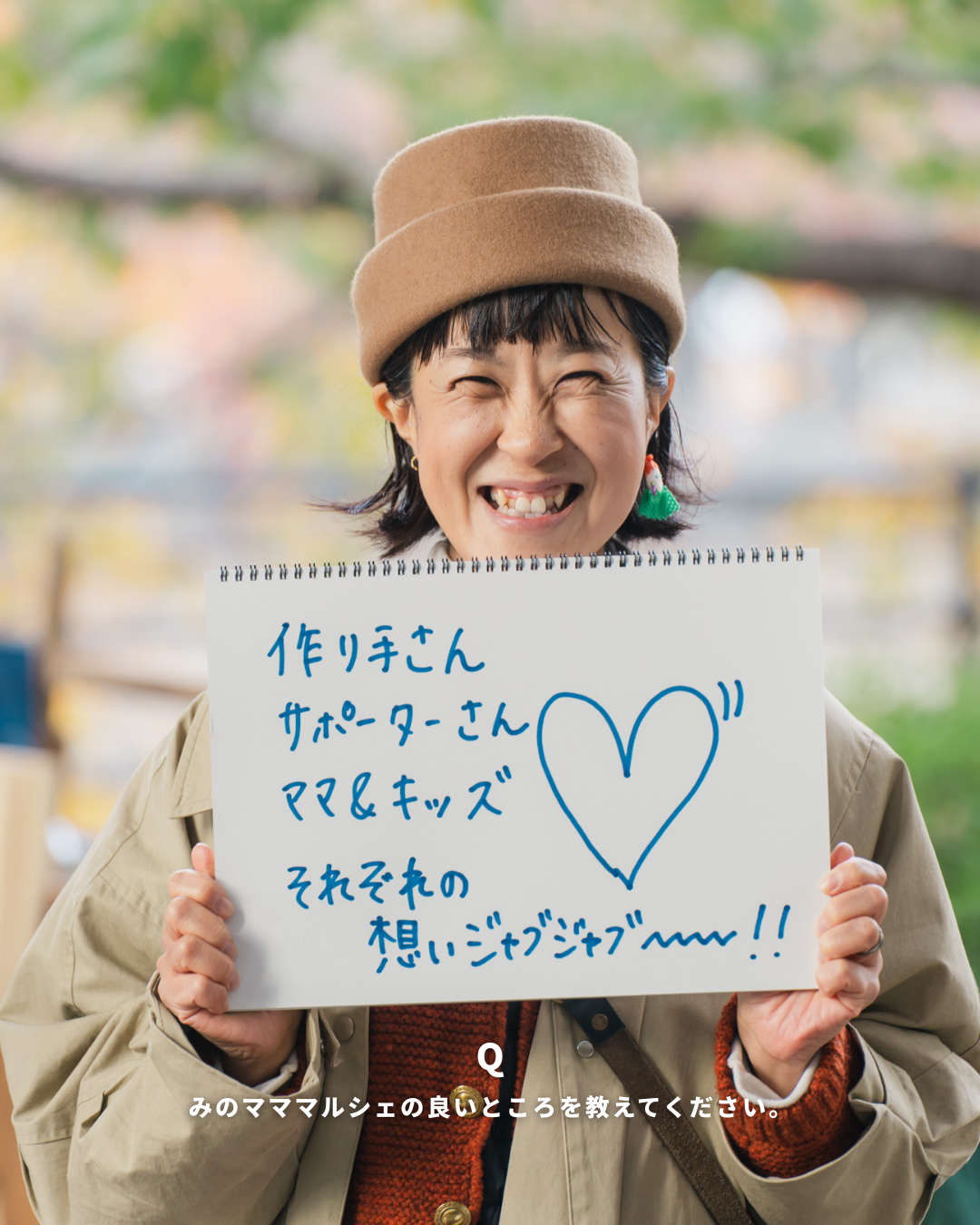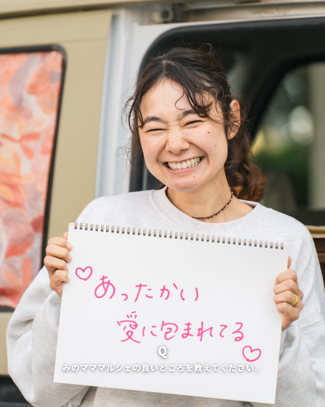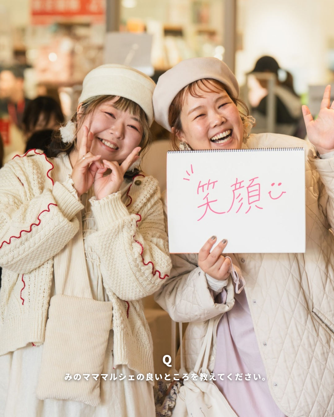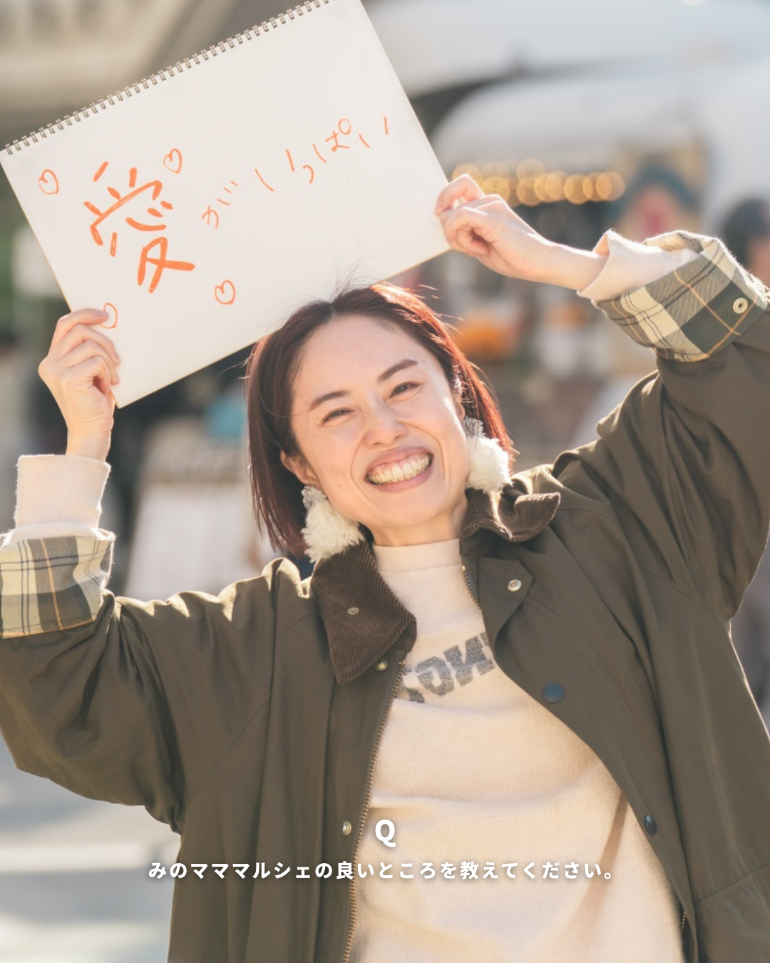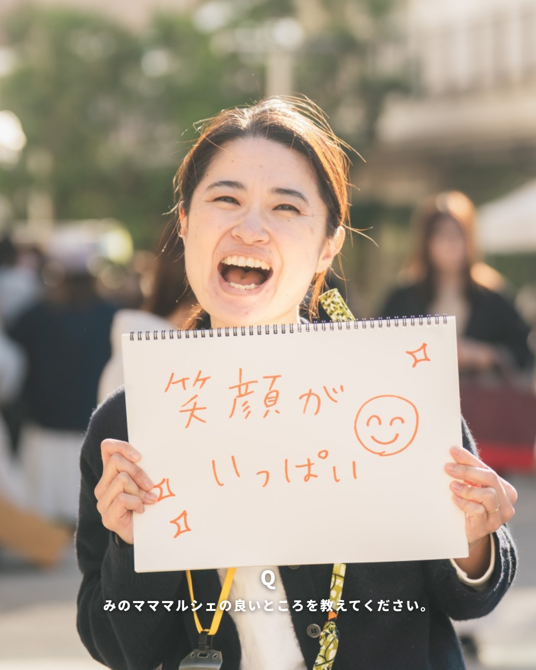みのマママルシェには「みんなでつくろう!ママが笑顔になれるまち」というメッセージに共感する素敵な人たちが集まり、みんなで一緒に、地域の中でみんながつながり支え合えるまちづくりにチャレンジしています。